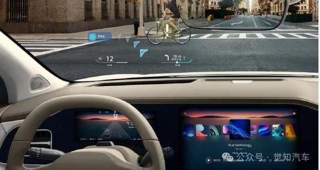 在AR-HUD的實現(xiàn)過程中,為了將數(shù)字成像與實景進行疊加同時又不影響駕駛員的視野,因此在成像上要求至少于駕駛員前方7.5m處形成投影虛像。由于此過程中VID(Virtual Image Distance,虛像距離)和FOV(Field of View,視場角)相對于W-HUD而言都更大,因此AR-HUD所呈現(xiàn)的虛像區(qū)域更廣。據(jù)測算,此虛擬大屏的尺寸可達到90英寸以上,在大尺寸虛擬屏的加持之下,其所顯示的內(nèi)容將不再局限于車速、電量等常用信息,同時由于相關(guān)技術(shù)水平的提升,其所呈之像也更加清晰醒目。