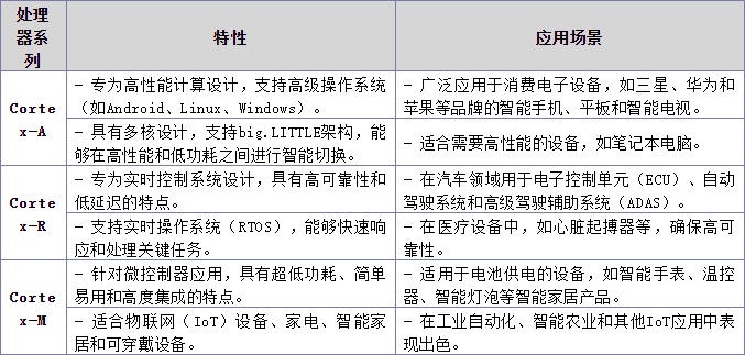 ARM的Cortex系列是ARM處理器產品線中最廣泛應用的家族,針對不同的應用場景,分為Cortex-A、Cortex-R和Cortex-M三大類,每一類都有各自的特點和目標應用。