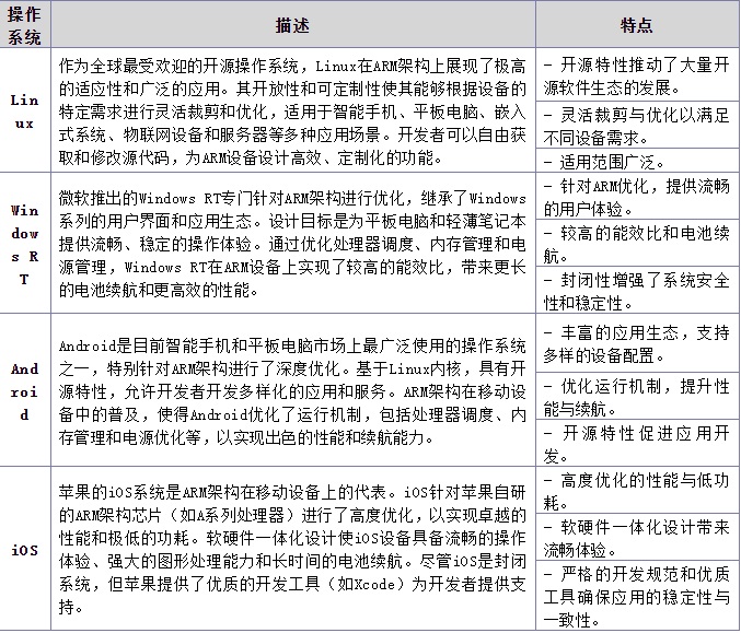 ARM架構上常用的操作系統(tǒng)種類繁多,涵蓋從開源平臺到專有系統(tǒng),為基于ARM的設備提供了多樣化的軟件生態(tài)支持。以下是一些典型的操作系統(tǒng)及其在ARM架構上的特點和應用優(yōu)勢。