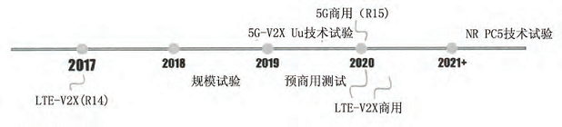 另外,目前國內(nèi)在DSRC系列技術(shù)和產(chǎn)業(yè)方面缺乏核心知識產(chǎn)權(quán)和產(chǎn)業(yè)基礎(chǔ)。而基于我國自主研發(fā)的4GTD-LTE移動通信技術(shù)標(biāo)準(zhǔn),C-V2X技術(shù)擁有核心自主知識產(chǎn)權(quán),可以打破國外產(chǎn)業(yè)在V2X通信技術(shù)壟斷,減少在知識產(chǎn)權(quán)方面的限制。整個C-V2X預(yù)期發(fā)展的關(guān)鍵時間節(jié)點(diǎn)如圖17所示。
