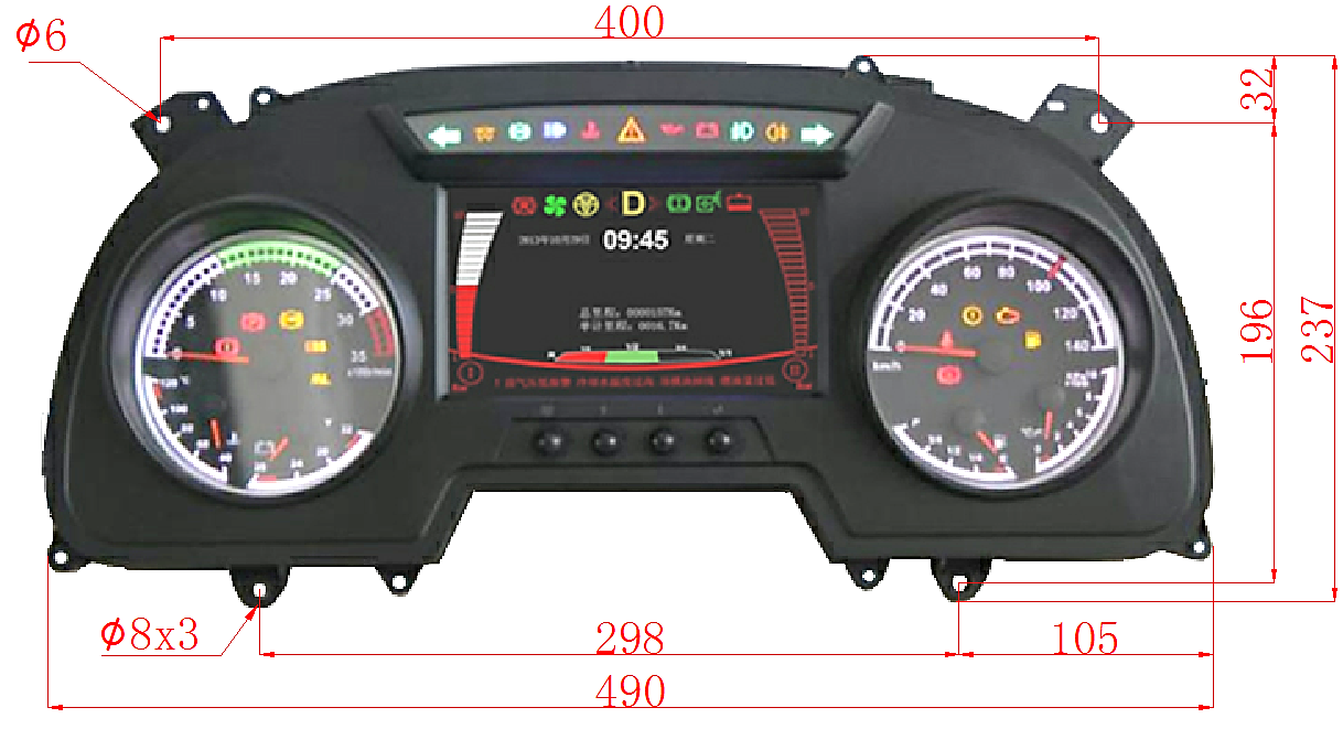 - 6個(gè)步進(jìn)電機(jī)驅(qū)動(dòng)的指針表盤 - 24個(gè)LED符號(hào)片 - 多個(gè)TFT符號(hào)片 - 7寸TFT彩色液晶屏 - 一個(gè)多音頻蜂鳴器 |